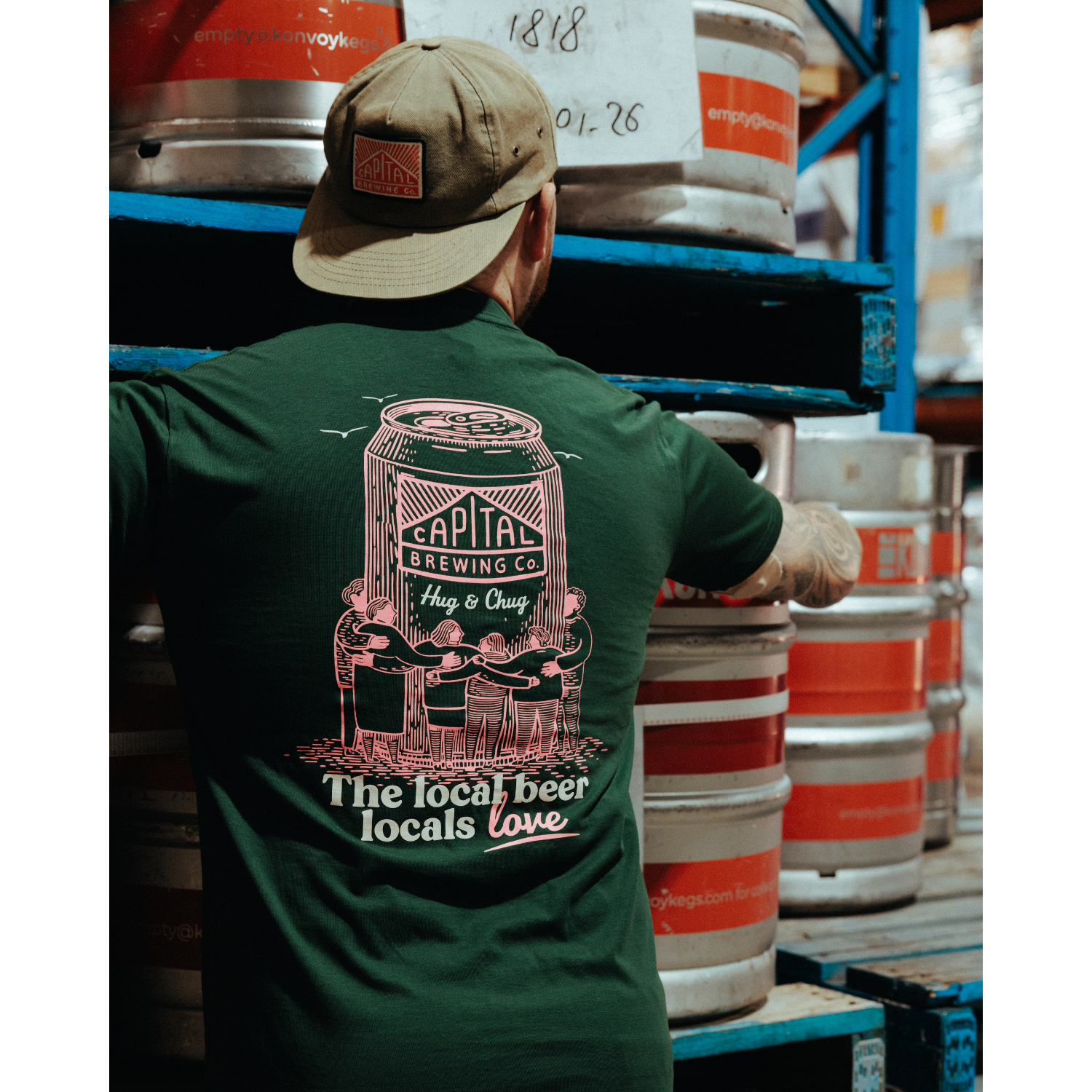 A wearable group hug for the Good Natured Crew. The Hug & Chug tee wraps the locals around a mighty cold tin and calls it community. Loud, proud and made for cheers and beers the locals love.
