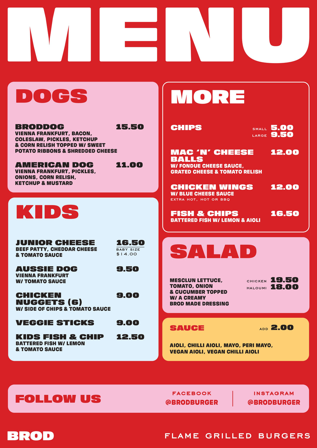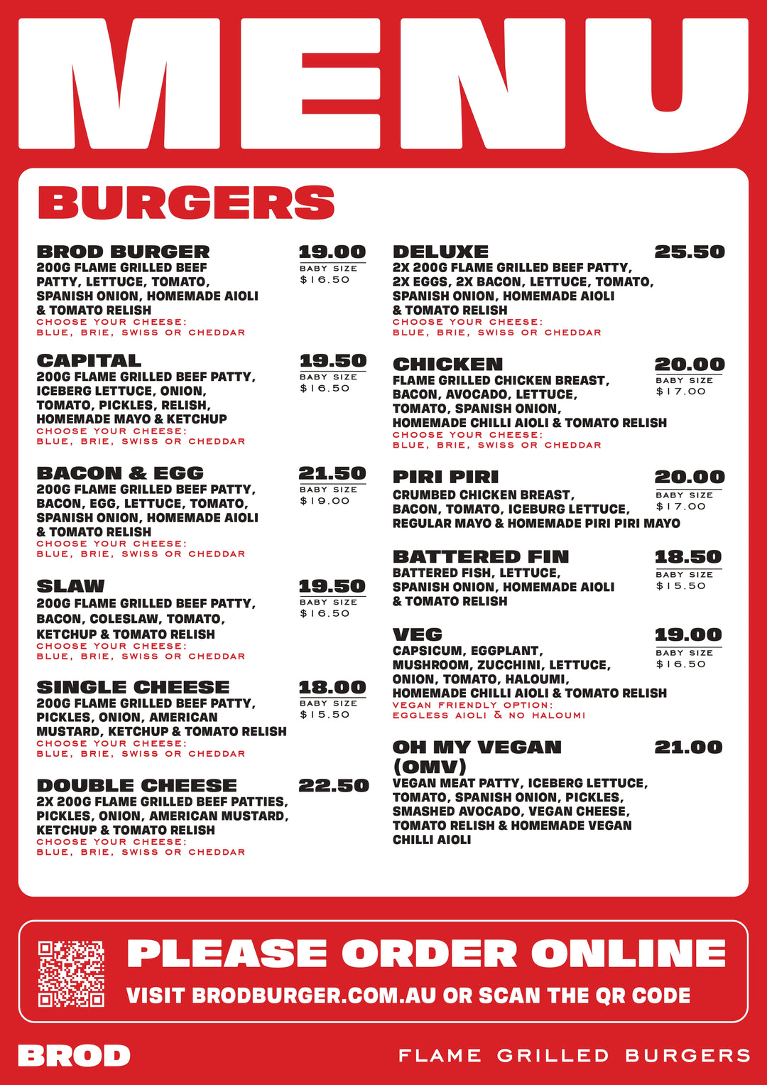 Brod Burger Menu