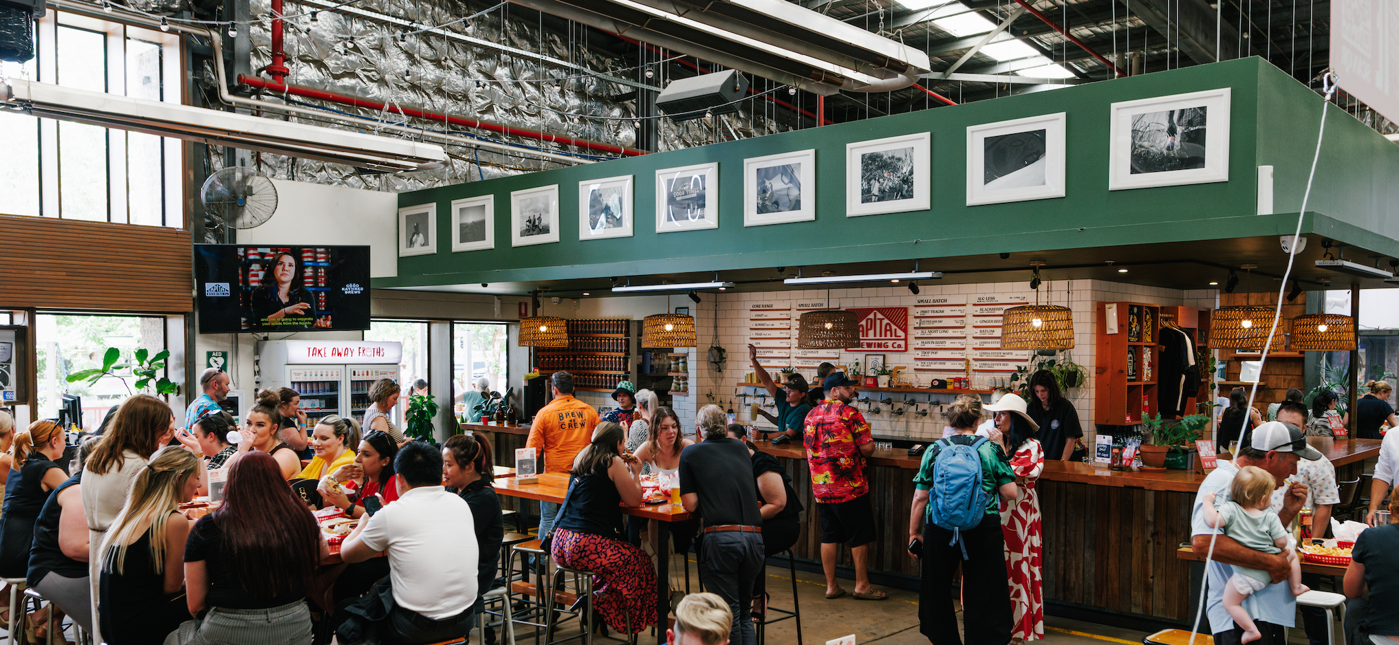 Our Canberra Taproom is possibly the best place in the world to get together for a freshly poured beer. There’s a massive space for small humans to play in (including a cubby house and games) and shady spots for four legged family members to laze around and daydream about being able to drink beer. All up there’s 2000 metres of lush garden space, including the only beer river* in the world. And did we mention that we’ve teamed up with the legendary team at Brodburger to bring you the finest burgers and hotdogs?